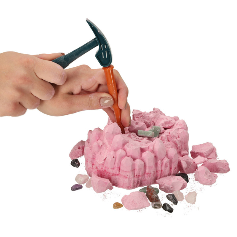 Staňte sa malým archeológom a objavte ukryté poklady! Táto vzdelávacia súprava umožní deťom pomocou kladiva a dláta odhaliť až 18 rôznych minerálov ukrytých vo veľkom sadrovom drahokame.