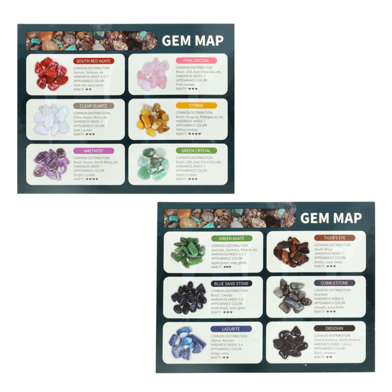 Objavené minerály si môžu deti vystaviť v špeciálnej vitríne alebo z nich vytvoriť originálny náhrdelník. Súčasťou balenia je aj praktický plastový box na ich uskladnenie a lupa na detailné pozorovanie. Anglický sprievodca poskytuje zaujímavé informácie o každom mineráli.