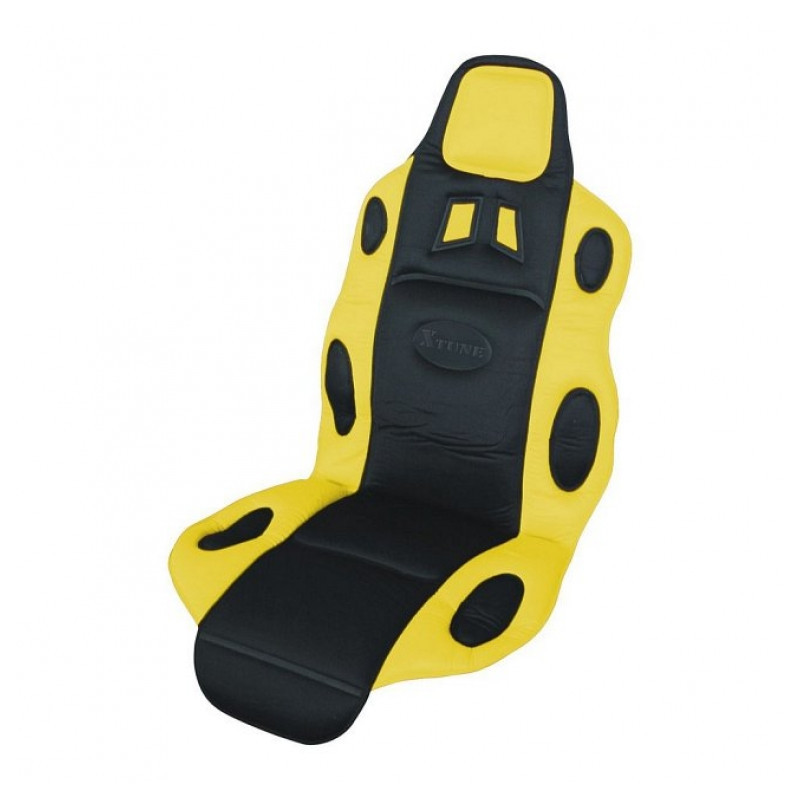 Univerzálny poťah sedadla s atraktívnym Race dizajnom. Pre všetky typy automobilov. Pripevnenie k sedadlu pomocou gumových popruhov. Farebné prevedenie čierno-žlté.
