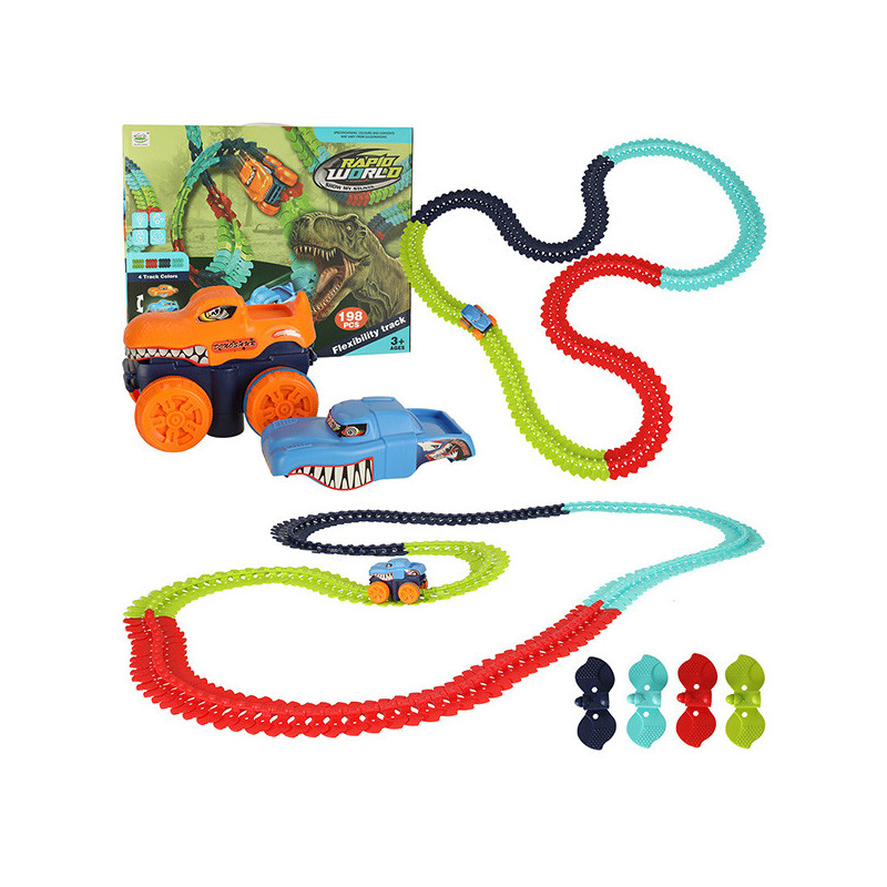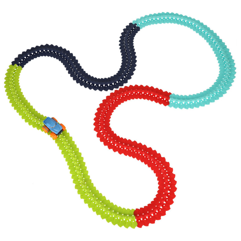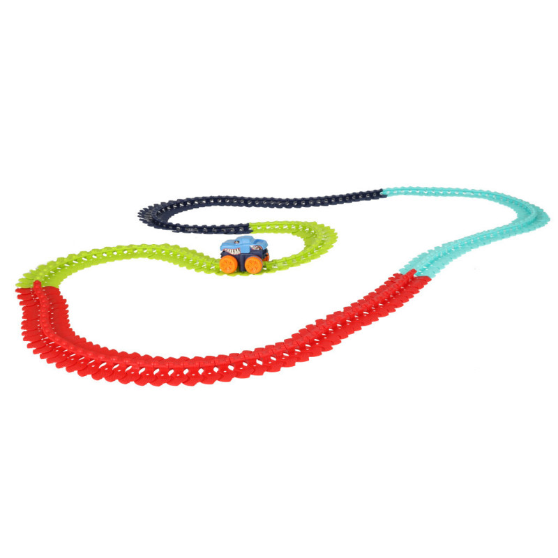 Súprava sa skladá zo 192 kociek v štyroch farbách, ktoré správne spojené tvoria flexibilnú dráhu, po ktorej bude autíčko jazdiť závratnou rýchlosťou. Nebojí sa ostrých zákrut ani jazdy do kopca - poradí si s každou výzvou!
