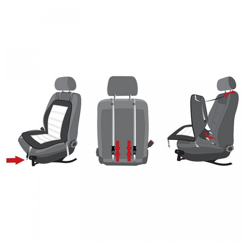 Materiál poťahu sedadla do auta je 100% polyester. S penovou podšívkou, ručné pranie pri 30°C. Univerzálna veľkosť. Farbostále 1ks v balení. 2 ročná záruka. Vhodné pre všetky bežné osobné automobily bez alebo s bočným airbagom Rozmery: Sedadlo: 44cm x 46,5cm Operadlo: 58cm x 45cm