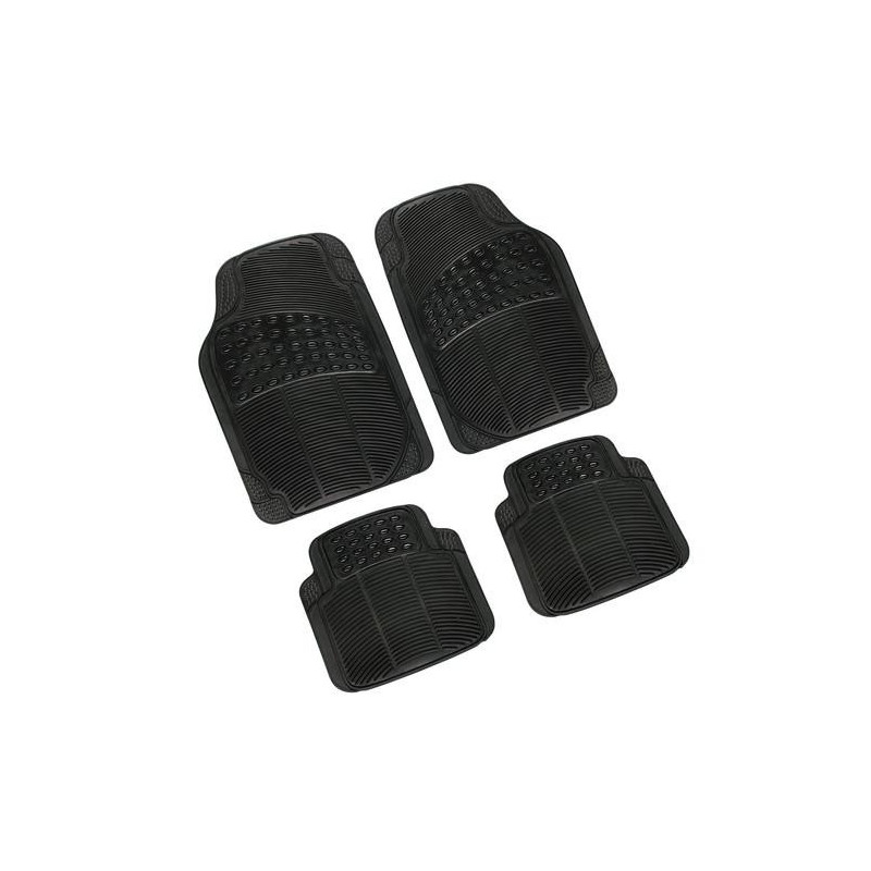 Gumové koberce - univerzálne sada 4 ks Vhodné pre všetky bežné osobné vozidlá. Materiál z PVC spĺňa európske normy. Bez zápachu, bez vyblednutia, umývateľný a extrémne odolný voči opotrebovaniu. Unikátny dizajn udržuje nečistoty a vlhkosť od topánok a topánok.
