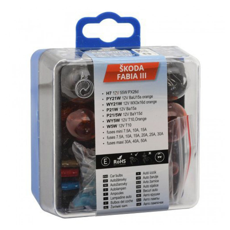 Využite ponúkanú pomoc prostredníctvom tejto plastovej krabičky plnej užitočných žiaroviek a poistiek pre vozidlo Škoda Fabia III. V prípade rozbitia či prasknutia žiarovky môžete ľahko tento problém opraviť len za niekoľko minút. Len niekoľko okamihov a trochu umu vás delí od vrátenia automobilu späť na cestu. Náhradné diely môžete mať vždy po ruke vďaka tejto súprave. Súprava obsahuje naozaj širokú paletu potrebného príslušenstva. Plastový obal zaistí maximálne bezpečie prevážaných komponentov. Vďaka tomu sa nemusíte báť o zničenie jemných drôtikov autožiaroviek.