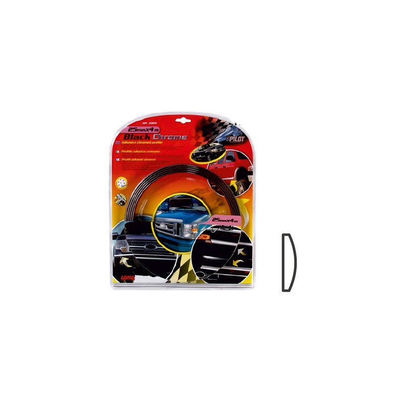 Chrómová plochá lišta na nalepenie. Gumová ozdobná lišta s pochrómovanou povrchovou úpravou. Jednoducho sa skracuje na požadovanú dĺžku. Uvedená cena je za 4 metre.