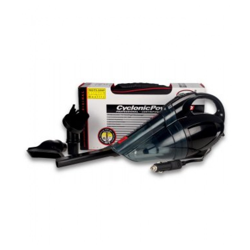 Malý, prenosný, cyklónový vysávač do auta pre jednoduché čistenie automobilov. - 12V/138W vysokovýkonný motor - turbo čistenie vďaka 2-filtračnému-systému s Cyclonic-systémom - vrátane tašky a pr...
