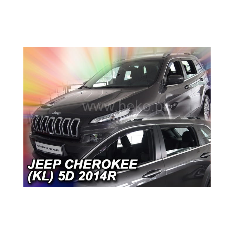 Deflektory pre JEEP Cherokee (KJ) 5D (+zadné) (2013->) na mieru na okna automobilu. Deflektory sú nazývane aj ofuky okien alebo protiprievanové clony.
