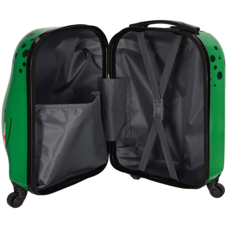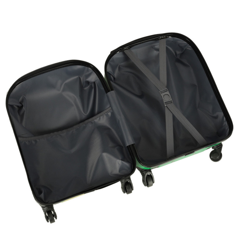 Detský kufrík so zábavnou grafikou krokodíla je ideálnym spoločníkom na každú cestu – malú aj veľkú. Vo vnútri sa nachádzajú bezpečnostné popruhy na uchytenie obsahu a praktické vrecko na drobnosti. Pre jednoduché používanie je kufor vybavený teleskopickou rukoväťou a štvorkolieskovým systémom pre hladké ťahanie.