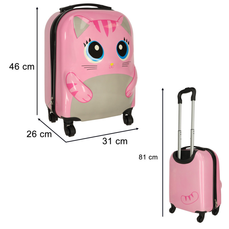 Ružový detský kufrík s grafikou mačičky je perfektným spoločníkom pre každého malého objaviteľa.