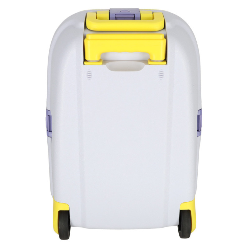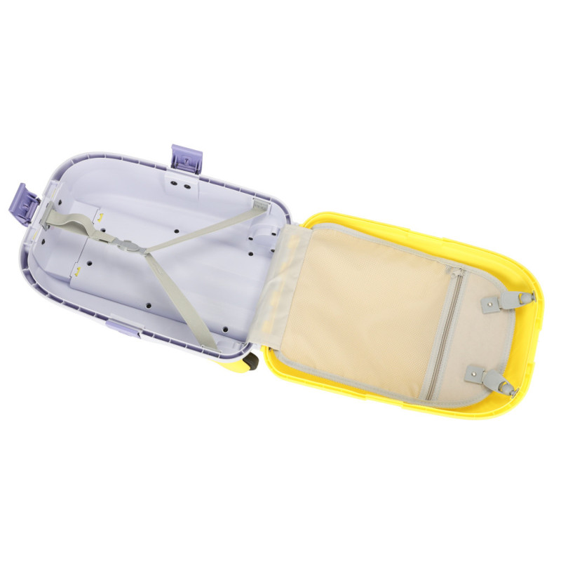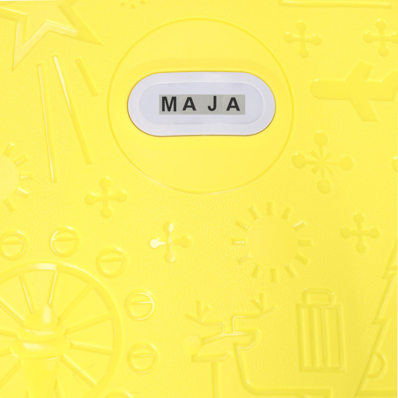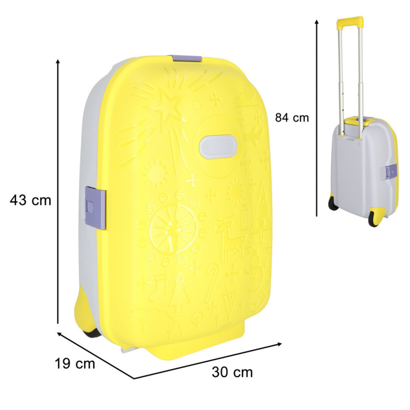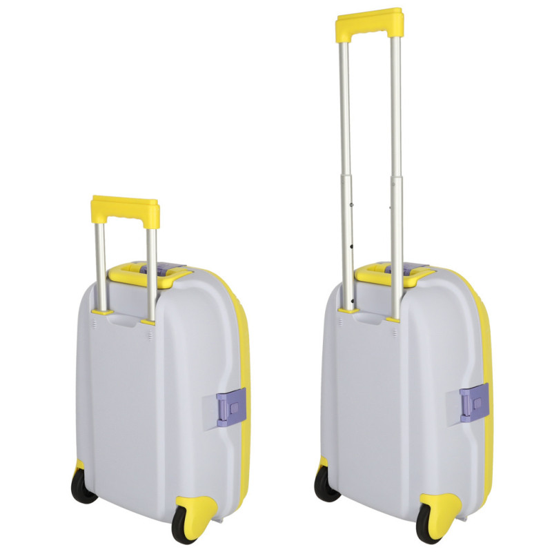 Žltý detský kufrík je skvelým spoločníkom na každé dobrodružstvo! Má výsuvnú rukoväť prispôsobenú výške dieťaťa a ľahkú konštrukciu, vďaka ktorej ho zvládnu ovládať aj tí najmenší. Bezpečné uzatváranie na tri klipsy zaručí, že veci zostanú počas cesty na svojom mieste.