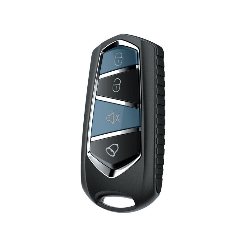 Diaľkový ovládač s ovládaním kufra a vyhľadávaním automobilu. Kompatibilný so všetkými systémami centrálneho uzamykania. Univerzálny učiaci diaľkový ovládač do ktorého dokážete nahrať signál z iného diaľkového ovládača s pevným kódom v pásme 433,92 MHz. Učiaci diaľkový ovládač obsahuje 4 tlačidlá, na ktoré dokážete nahrať konkrétne tlačidlá pôvodného diaľkového ovládača