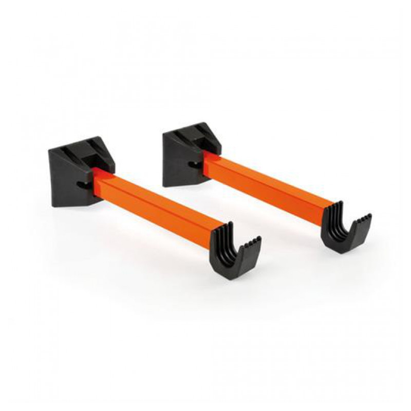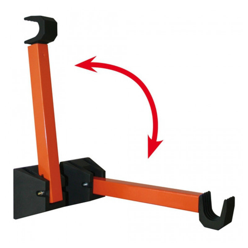 Držiak bicykla sa montuje na stenu pomocou priložených skrutiek. Max. nostnosť 20kg. Sada obsahuje dva výklopné ramená. Dĺžka ramena (od steny) cca 36cm.