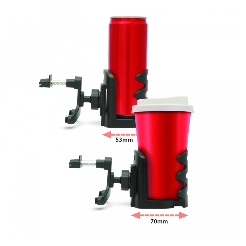 Nastaviteľný priemer držiaku podľa veľkosti poháru/fľašky/plechovky.