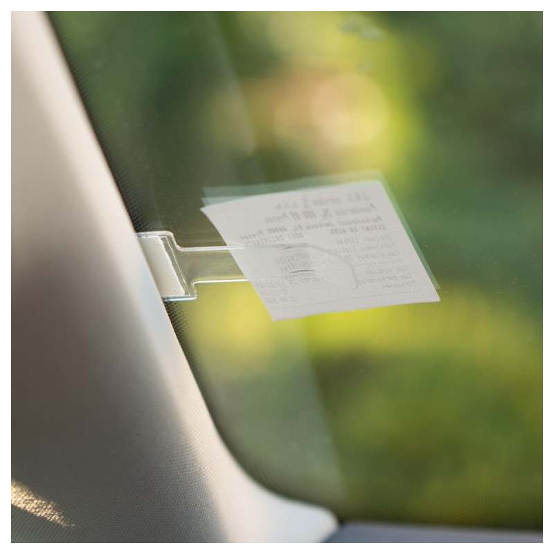 Univerzálny držiak parkovacej karty je praktický doplnok, ktorý sa jednoducho nalepí na vnútornú stranu čelného skla. Tento držiak udrží Vašu parkovaciu kartu bezpečne na mieste, čím zamedzíte jej strate alebo posúvaniu počas jazdy.