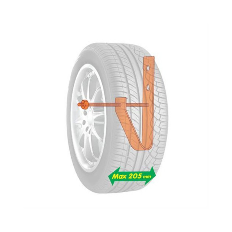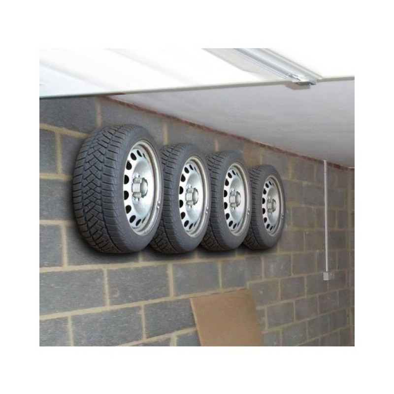 Vhodné na montáž na stenu, je priestorovo úsporné riešenie pre uloženie 4 kompletných kolies s maximálnou šírkou 205 mm. Sada obsahuje: 4x držiaky, 8x hmoždiniek a šrób.