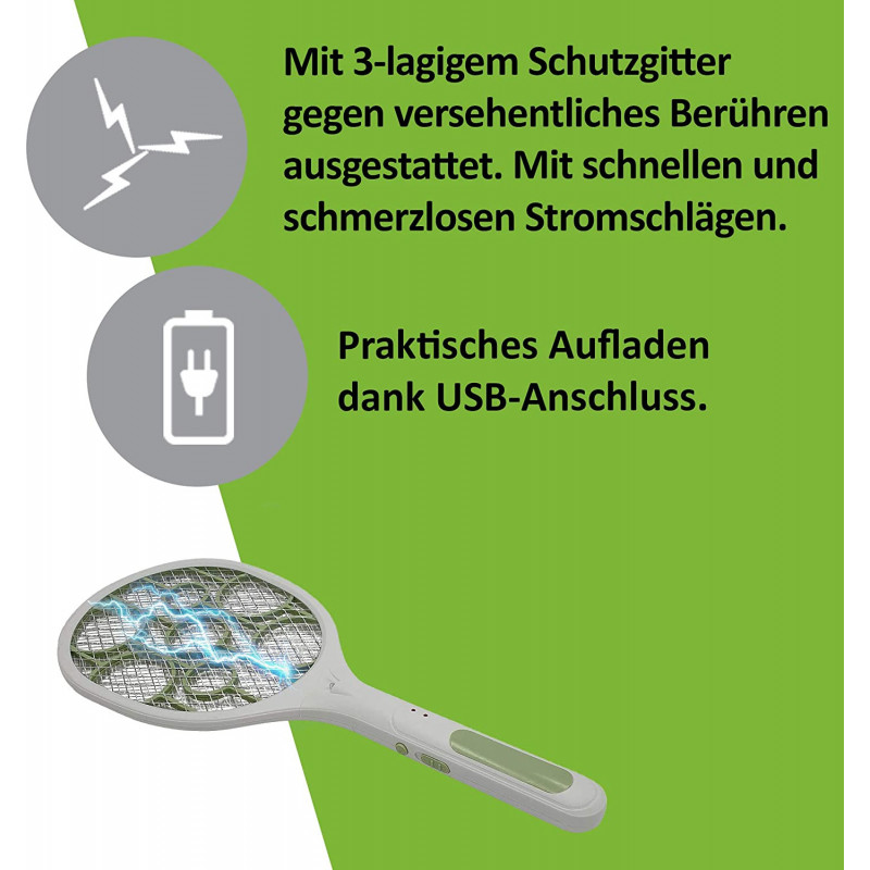 BEZPEČNÉ NA POUŽITIE: Používateľ je chránený pred náhodným kontaktom s sieťou vysokého napätia. Vďaka trojvrstvovej ochrannej mriežke. Je napájaný z batérie a je možné ho nabíjať pomocou dodaného kábla USB