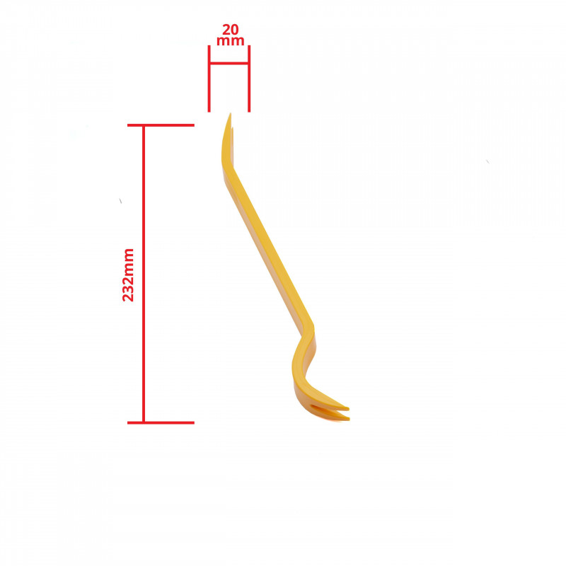 - Dvojito zakrivená páka: 232 x 20 mm s výrezom.