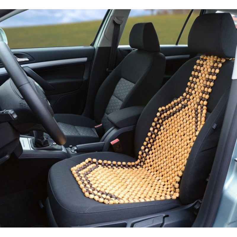 Vzdušný masážny poťah na sedadlo automobilu, univerzálne upevnenie na väčšinu bežne používaných sedadiel. Poťah je vyrobený z drevených guličiek, ktoré príjemne masírujú telo, podporujú krvný obeh, pomáhajú znižovať únavu i bolestivosť chrbta a umožňujú prúdenie vzduchu medzi sedadlom a chrbtom vodiča. Poťah rozložte na sedadlo a v hornej časti ho upevníte pomocou šnúrok za opierku hlavy. Ak poťah na sedadlo alebo akejkoľvek jeho časť upevnenia nebude prekrývať vyústenie airbagov v operadle sedadla (pozri dokumentácia k vozidlu), je možné poťah použiť aj na sedadlá so zabudovaným bočným airbagom priamo v operadle. Veľkosť poťahu: 127 x 38 cm.