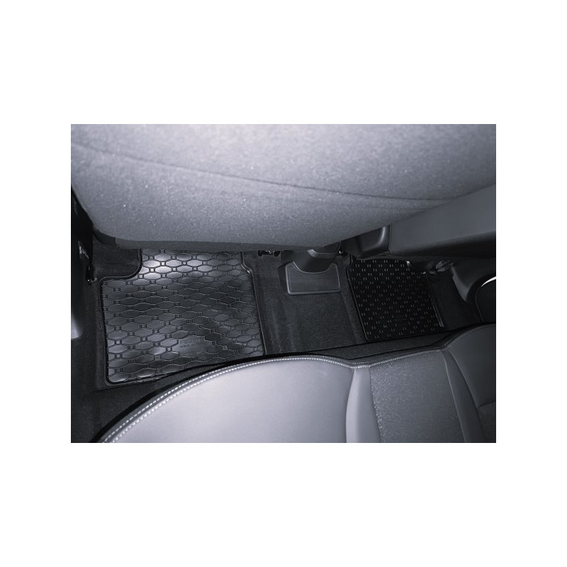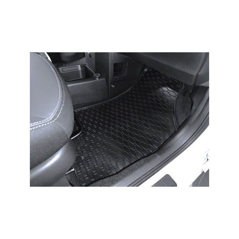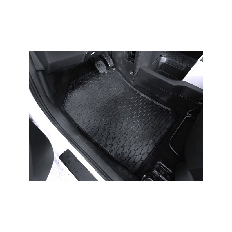 Gumené rohože na mieru pre DACIA Spring (2022->). Rohože sú vyrobené presne na mieru interiéru daného vozidla. Lacnejšia náhrada originálnych rohoží.