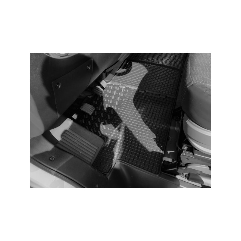 Gumené rohože na mieru pre FIAT Ducato 3miestne (2007-2021). Rohože sú vyrobené presne na mieru interiéru daného vozidla. Lacnejšia náhrada originálnych rohoží.