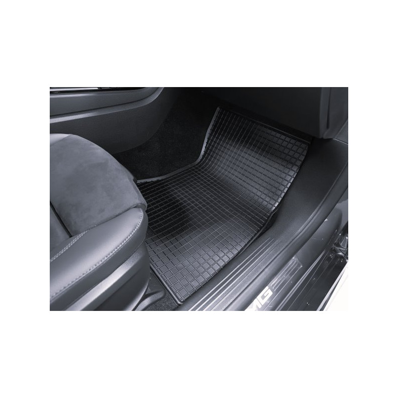 Gumené rohože na mieru pre Mercedes CLA (C118/X118) (2020->). Rohože sú vyrobené presne na mieru interiéru daného vozidla. Lacnejšia náhrada originálnych rohoží.