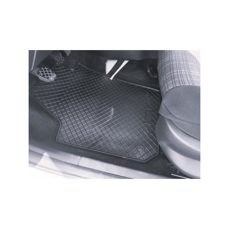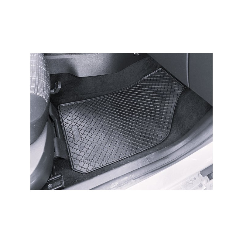 Gumené rohože na mieru pre design ŠKODA Fabia III (2014->). Rohože sú vyrobené presne na mieru interiéru daného vozidla. Lacnejšia náhrada originálnych rohoží.