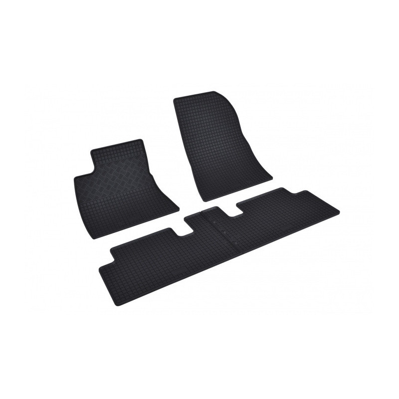 Gumené rohože na mieru pre TESLA Model 3 (2017->). Rohože sú vyrobené presne na mieru interiéru daného vozidla. Lacnejšia náhrada originálnych rohoží.
