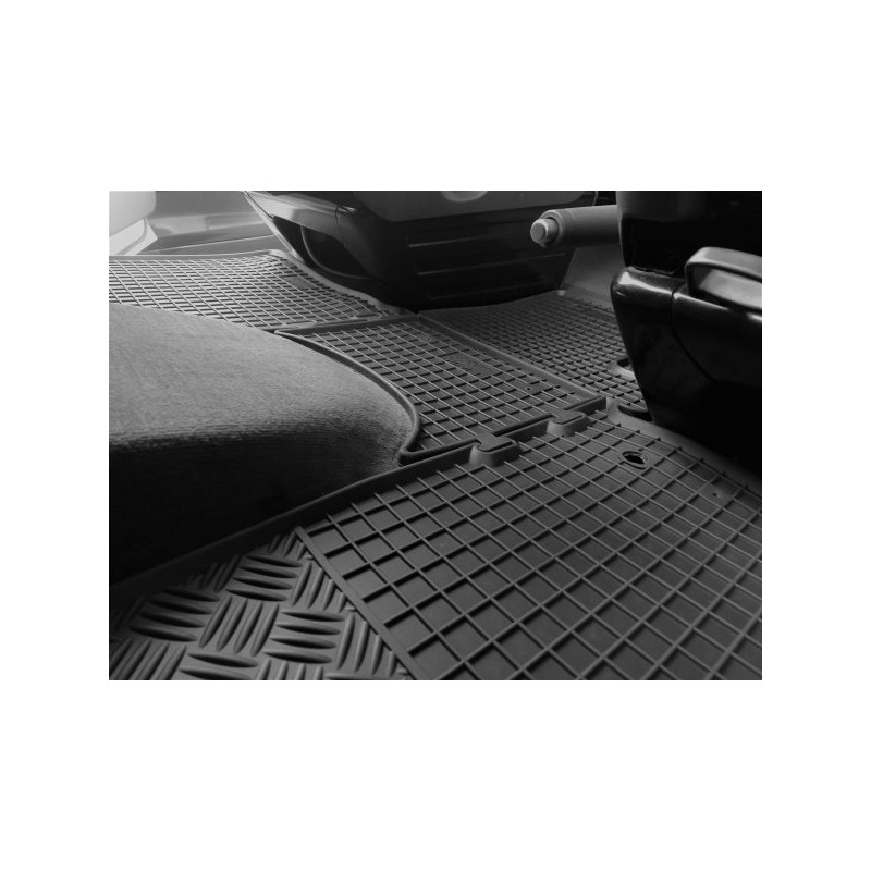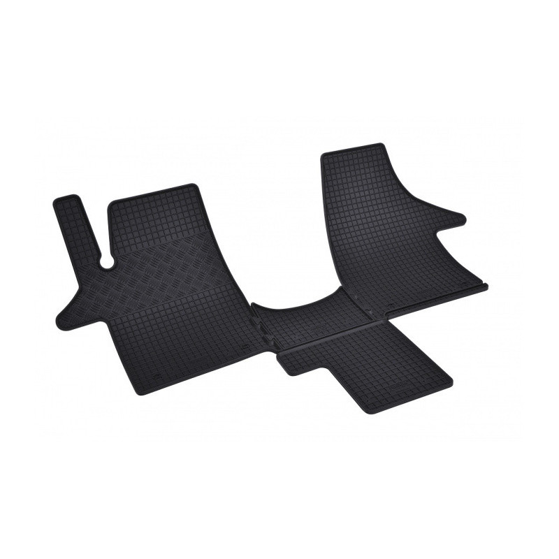 Gumené rohože na mieru pre VOLKSWAGEN T6 2m Transporter/Caravella/Multivan +TUNEL (4diel) (2015->). Rohože sú vyrobené presne na mieru interiéru daného vozidla. Lacnejšia náhrada originálnych rohoží.