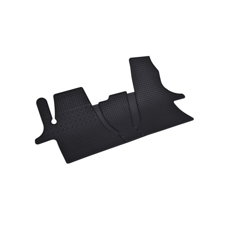 Gumené rohože na mieru pre VOLKSWAGEN T6.1 Transporter/Caravelle/Multivan 2/3miestne (3diel) (2019->). Rohože sú vyrobené presne na mieru interiéru daného vozidla. Lacnejšia náhrada originálnych rohoží.