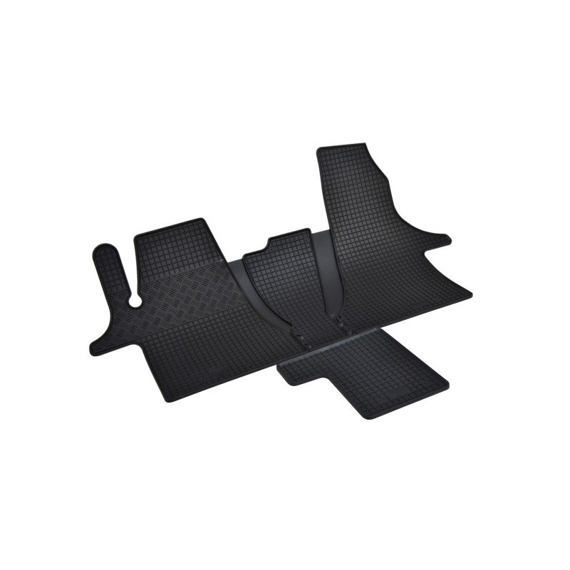 Gumené rohože na mieru pre VOLKSWAGEN T6.1 Transporter/Caravelle/Multivan 2miestne +TUNEL (4diel) (2019->). Rohože sú vyrobené presne na mieru interiéru daného vozidla. Lacnejšia náhrada originálnych rohoží.