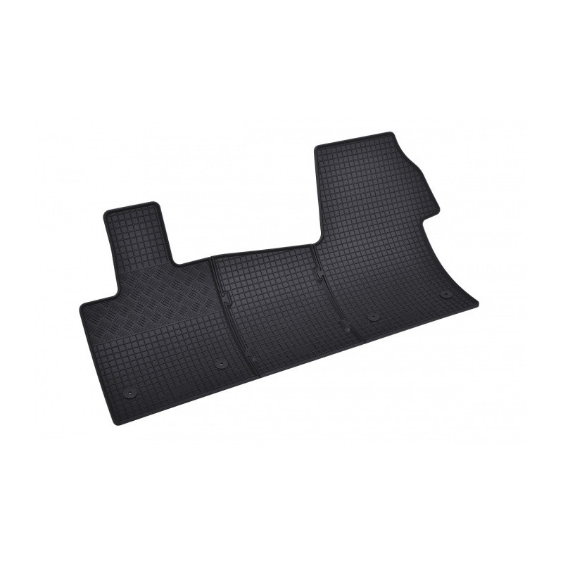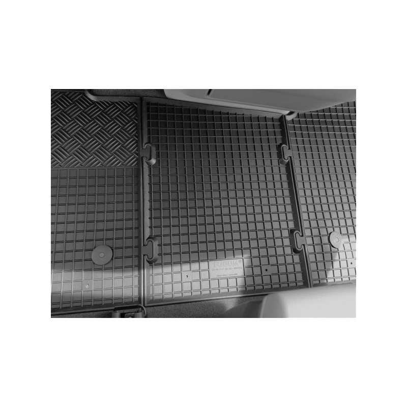 Gumené rohože na mieru pre VOLKSWAGEN T7 Multivan 2miestne 1.rada (2022->). Rohože sú vyrobené presne na mieru interiéru daného vozidla. Lacnejšia náhrada originálnych rohoží.