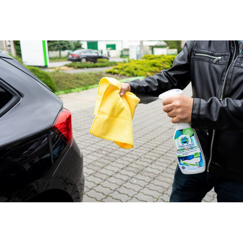 Ak budete dodržiavať jednoduché zásady, umývanie auta bez použitia vody je rovnako bezpečné ako umývanie s vodou. Používajte dostatočné množstvo kvalitných mikrovláknových utierok. Zloženie prostriedku HAPPY GLOBIE WATERLESS CAR WASH AND WAX zabezpečí rozpustenie nečistôt a ich uzamknutie do kapsúl, ktoré treba následne odstrániť z povrchu mikrovláknovými utierkami.