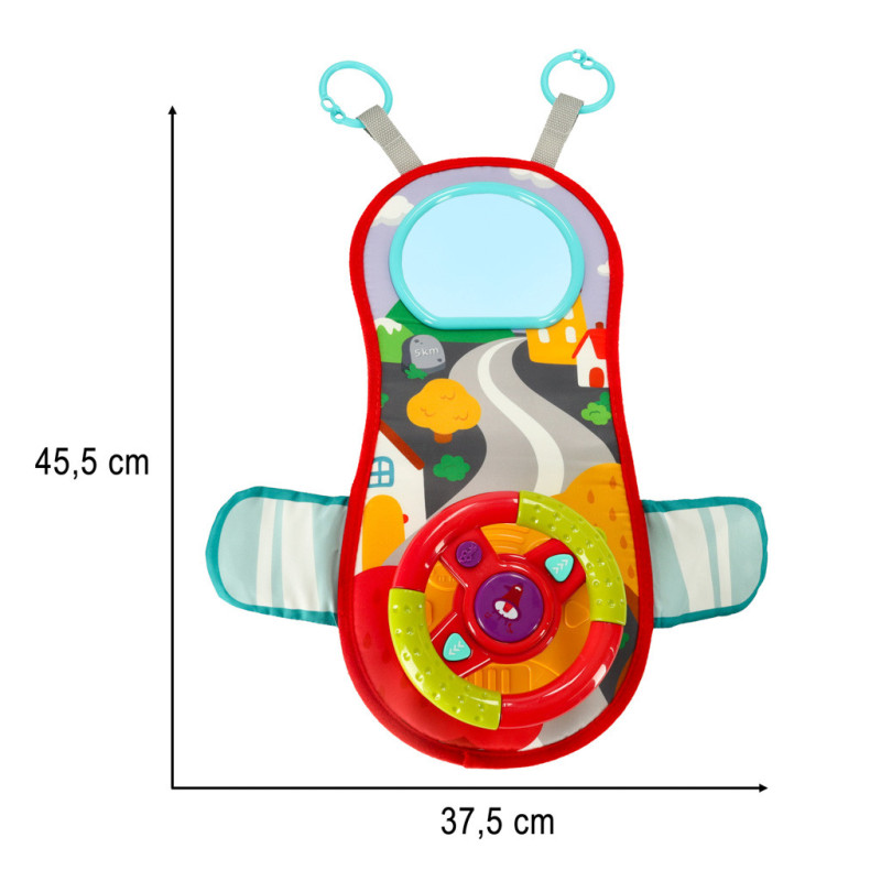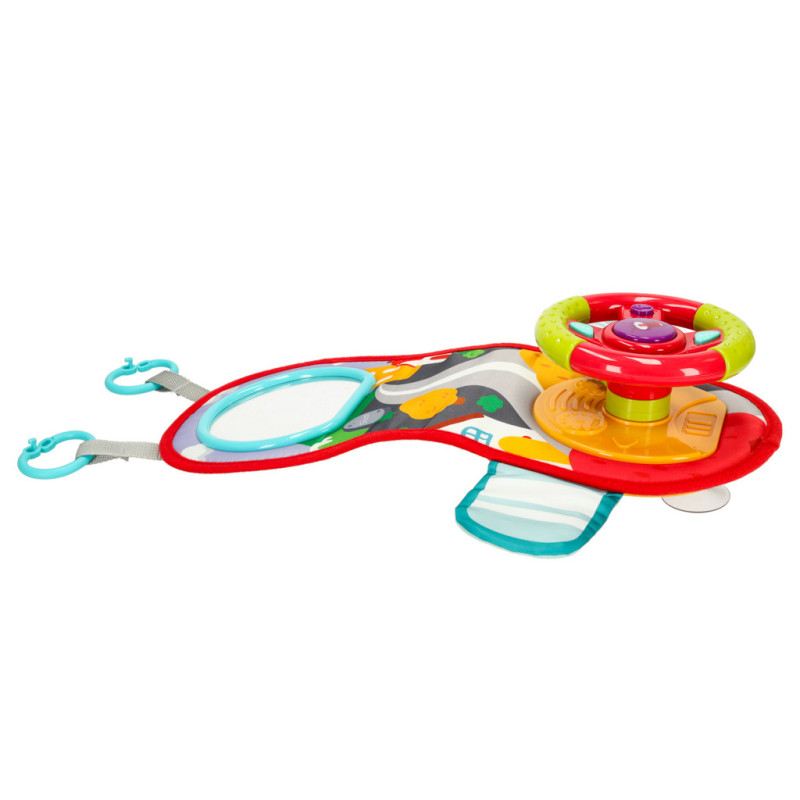 Interaktívny volant je skutočnou lahôdkou pre malých objaviteľov. Farebná podložka so zrkadlom a volantom s klaksónom a smerovkami vytvárajú jedinečnú atmosféru jazdy v skutočnom aute. Realistické zvuky prenesú vaše dieťa do sveta plného dobrodružstva!