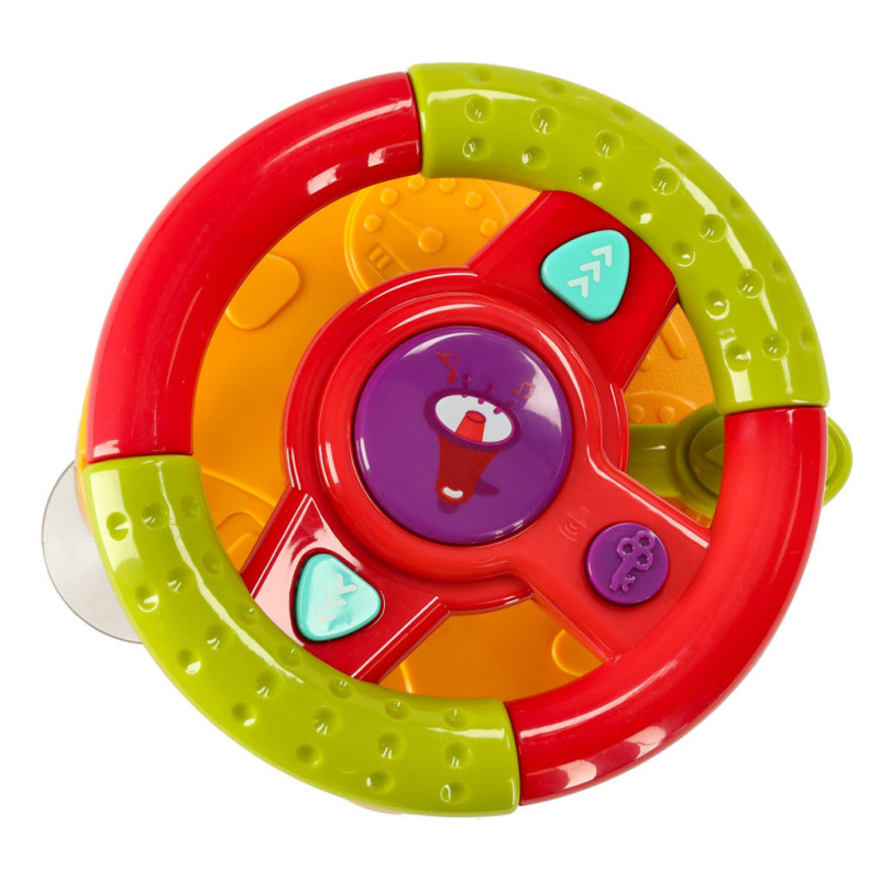 Praktické prísavky a nástavce umožňujú pripevniť volant na kočík, autosedačku alebo na stenu či stôl. S ním bude každá cesta autom zaujímavejšia!