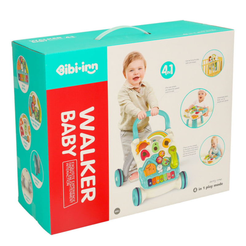 Chodítko s edukačným stolíkom 4 v 1 je všestranná hračka, ktorá podporuje motorický aj kognitívny rozvoj bábätka od 6 mesiacov. Kombinuje až štyri funkcie – chodítko, interaktívny stolík, hračku na postieľku a senzorickú dosku. Transformácia medzi režimami je jednoduchá a nevyžaduje žiadne náradie.