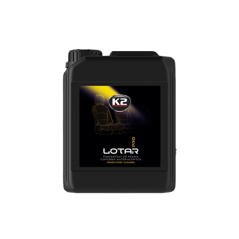 K2 LOTAR – čistič čalúnenia, kobercov a alcantary K2 LOTAR je nízkopenivý čistiaci prostriedok určený na hĺbkové čistenie autopoťahov, kobercov, velúrových tkanín a alcantary. Je vhodný aj pre stroje s funkciou vstrekovania a odsávania vody. Dokonale si poradí s zaschnutými aj mastnými nečistotami. Produkt má vynikajúcu rozpustnosť vo vode, nezanecháva šmuhy ani fľaky – dokonca ani na čiernych a náročných povrchoch. Obnovuje prirodzený vzhľad materiálu, zanecháva príjemnú vôňu a neutralizuje pachy.