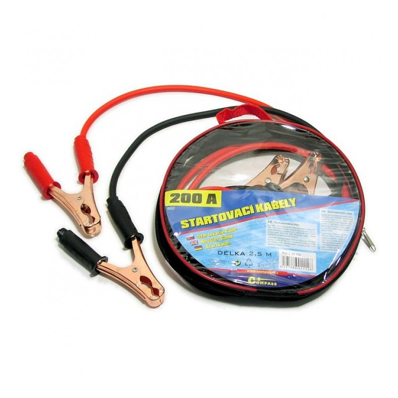 Kábel je vyrobený zo 100% medi. Neobsahuje žiadne prísady iných kovov, ktoré znižujú účinnosť štartovacích káblov. Farebne označené štartovacie káble so svorkami na akumulátor. Max. prúd 200 ampér, dĺžka 2,5 metra. Uzatvárateľné balenie zipper bag, ľahké uloženie štartovacích káblov do praktického na zips uzatvárateľného obalu.