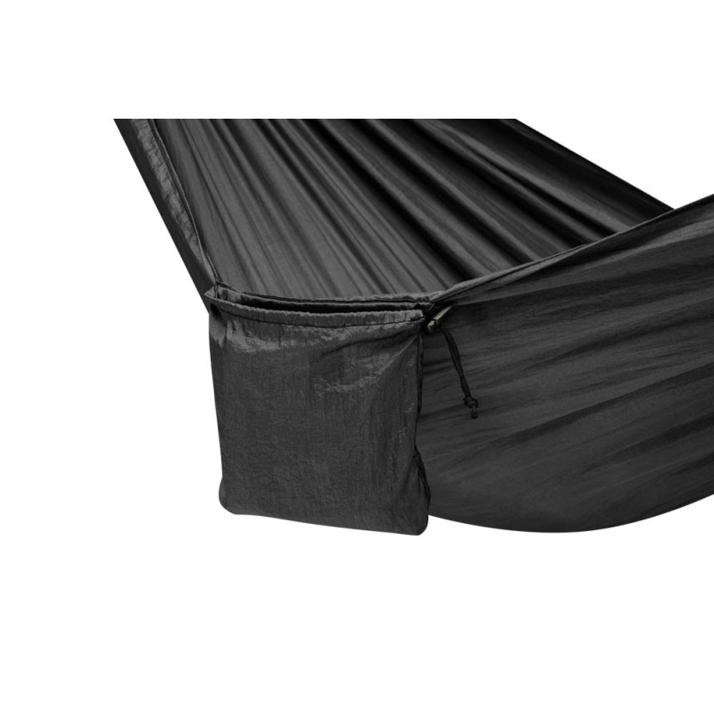 Hamak na kempovanie je skvelou náhradou za klasický stan. Poskytuje pohodlný oddych priamo v prírode, pričom je ľahký, kompaktný a jednoducho prenosný. Po zložení sa zmestí do praktického puzdra, ktoré po rozložení môžete využiť ako vrecko na telefón alebo cennosti.