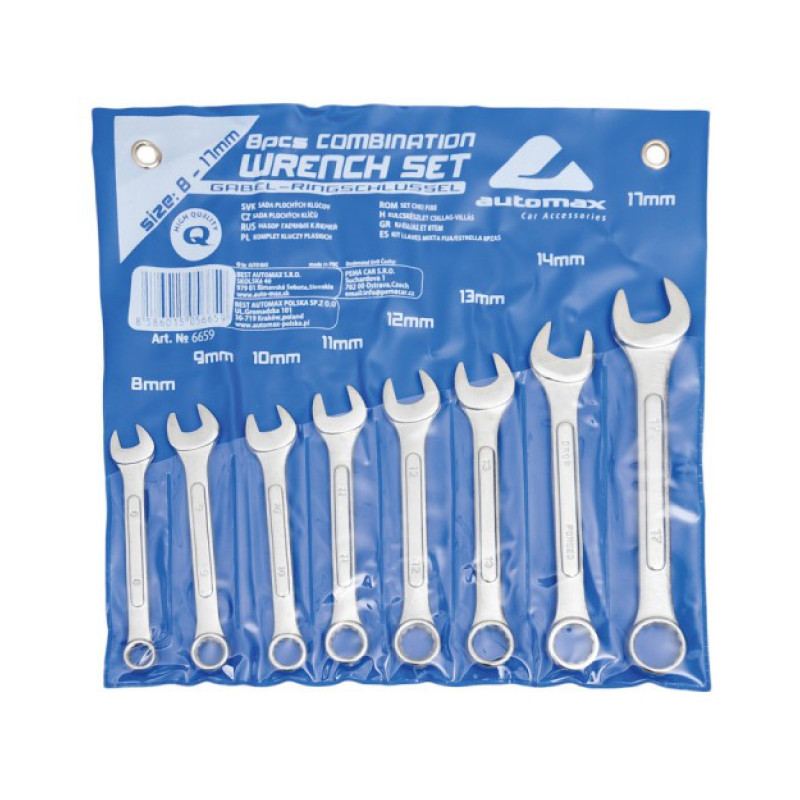 Sada 8ks kľúčov na všestranné použitie. Rozmer kľúčov: 8, 9, 10, 11, 12, 13, 14, 17mm