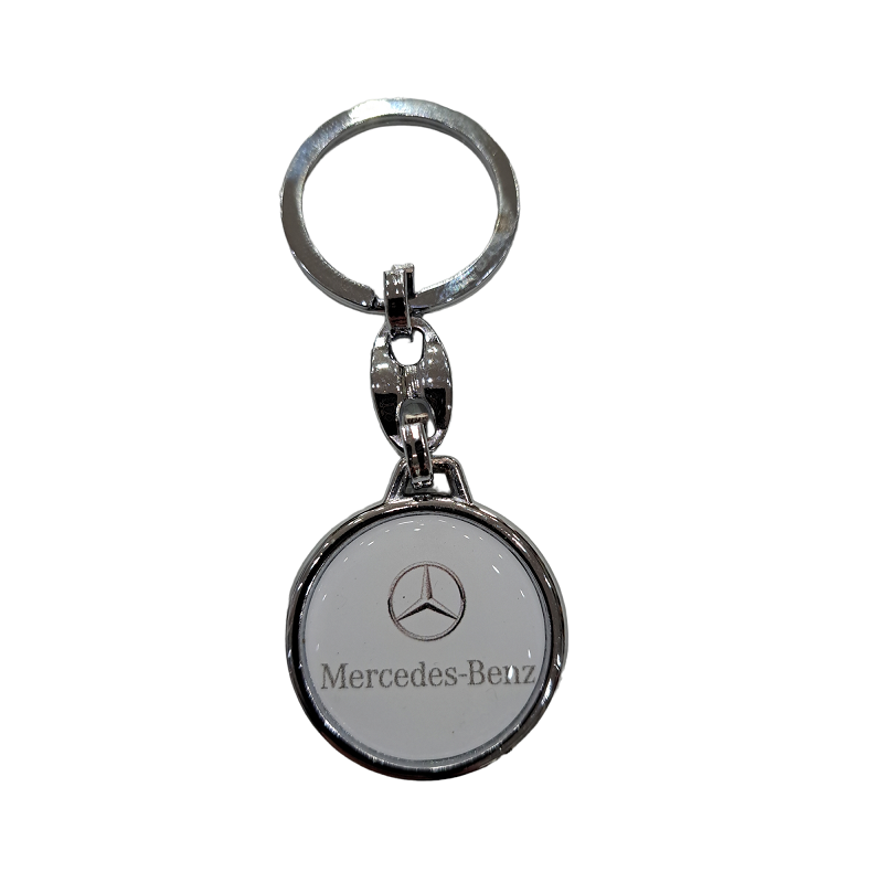 Kovová kľúčenka so živicovou nálepkou s logom auta.