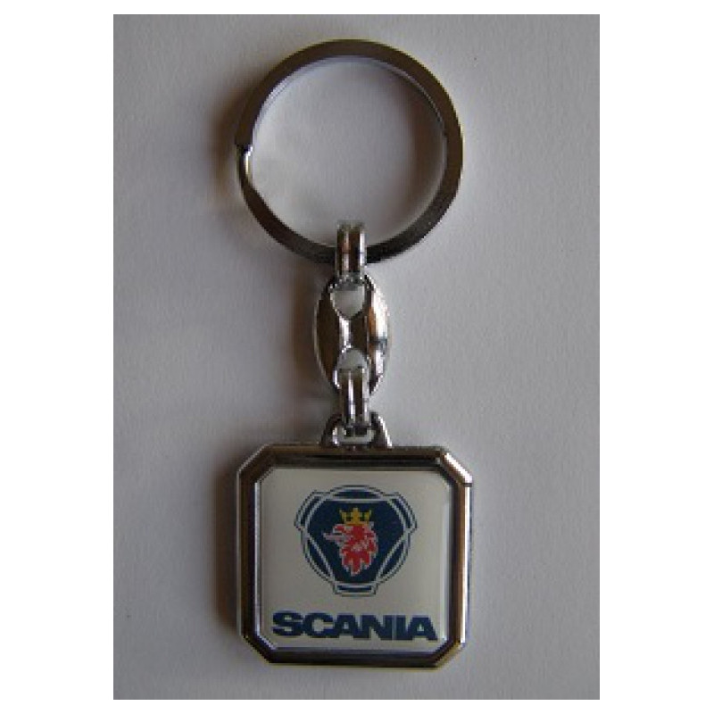 Kovová kľúčenka so živicovou nálepkou s logom auta.