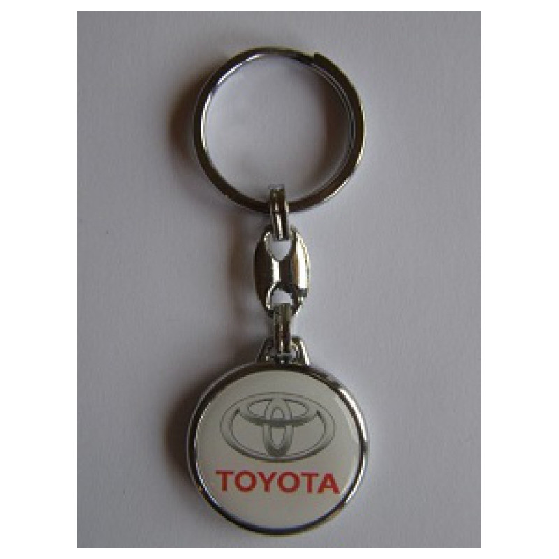 Kovová kľúčenka so živicovou nálepkou s logom auta.