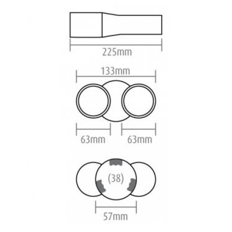 Vhodné na výfuk o priemere: od 38 do 51mm. (priemer koncovky 57mm, úchyty po stranách zaberajú cca 6 mm)