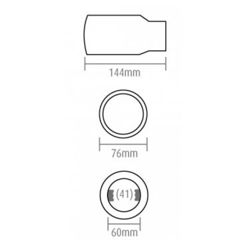 Vhodné na výfuk o priemere: od 41 do 54mm (priemer koncovky 60mm, úchyty po stranách zaberajú cca 6 mm)