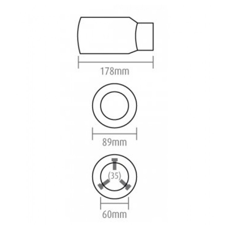 Vhodné na výfuk o priemere: od 35 do 54mm (priemer koncovky 60mm, úchyty po stranách zaberajú cca 6 mm)