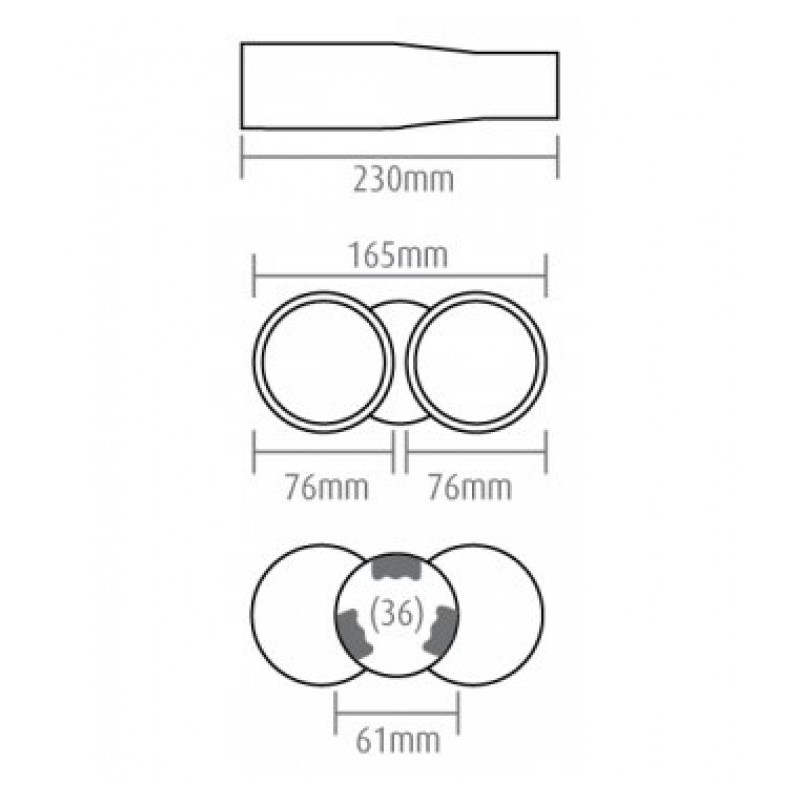 Vhodné na výfuk o priemere: od 36 do 55mm. (priemer koncovky 61mm, úchyty po stranách zaberajú cca 6 mm)