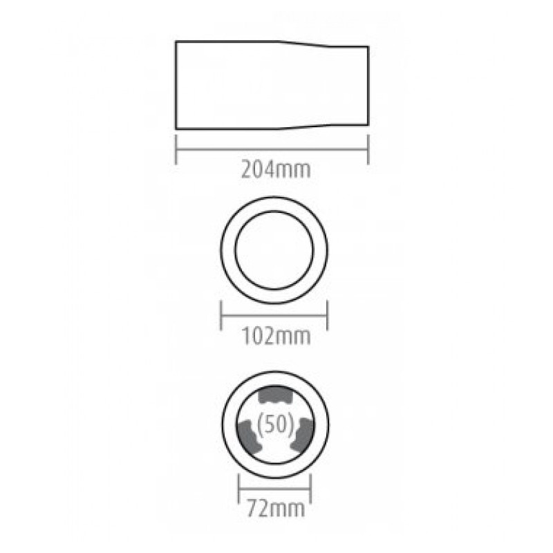 Vhodné na výfuk o priemere: od 50 do 66mm (priemer koncovky 72mm, úchyty po stranách zaberajú cca 6 mm)