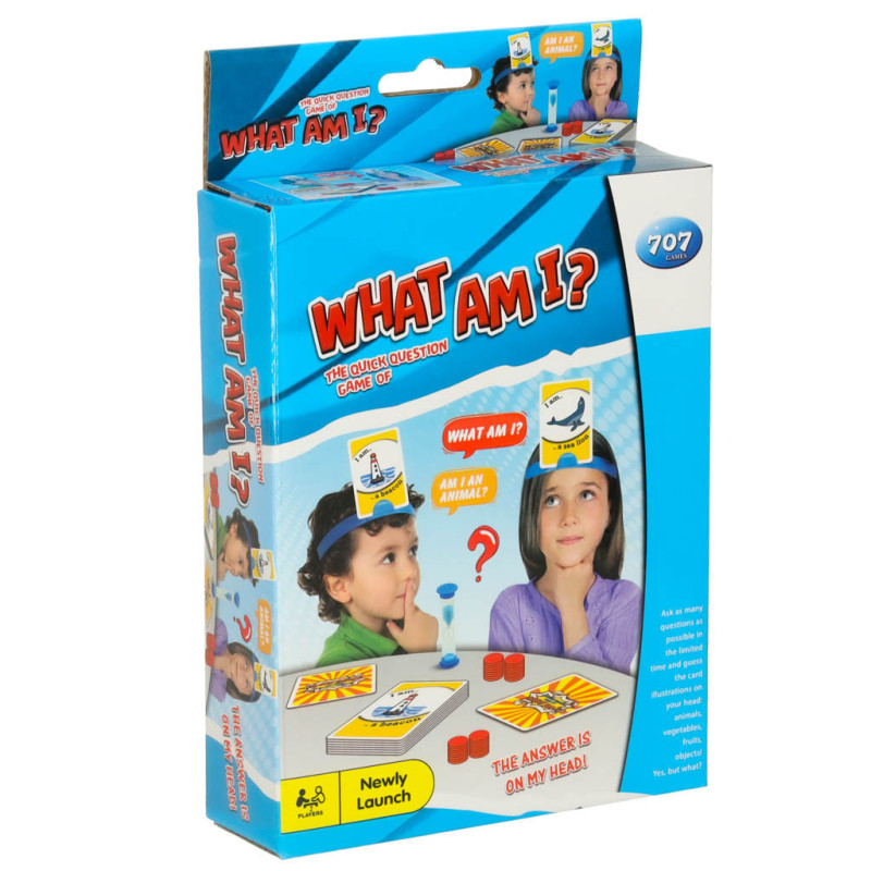 Hráči majú na hlave čelenku s kartou, ktorú nevidia. Ich úlohou je? Uhádnuť, čo karta predstavuje, kladením otázok ostatným hráčom,na ktoré sa dá odpovedať len 'áno' alebo 'nie'. Táto hra je viac ako len hádanie - je to skutočná výzva pre predstavivosť a dôvtip!
