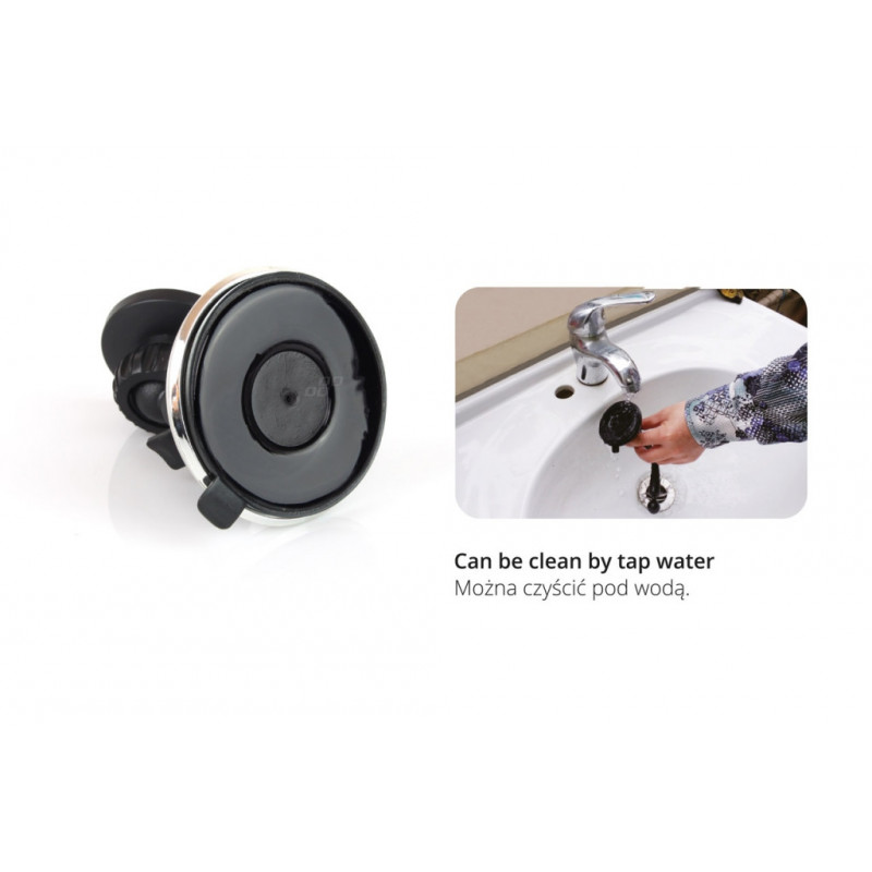 Prísavka je potiahnutá špeciálnym silikónom, ktorá umožňuje pripevnenie držiaka na čelné sklo alebo palubnú dosku vozidla. Môže sa tiež vyčistiť pod vodou.