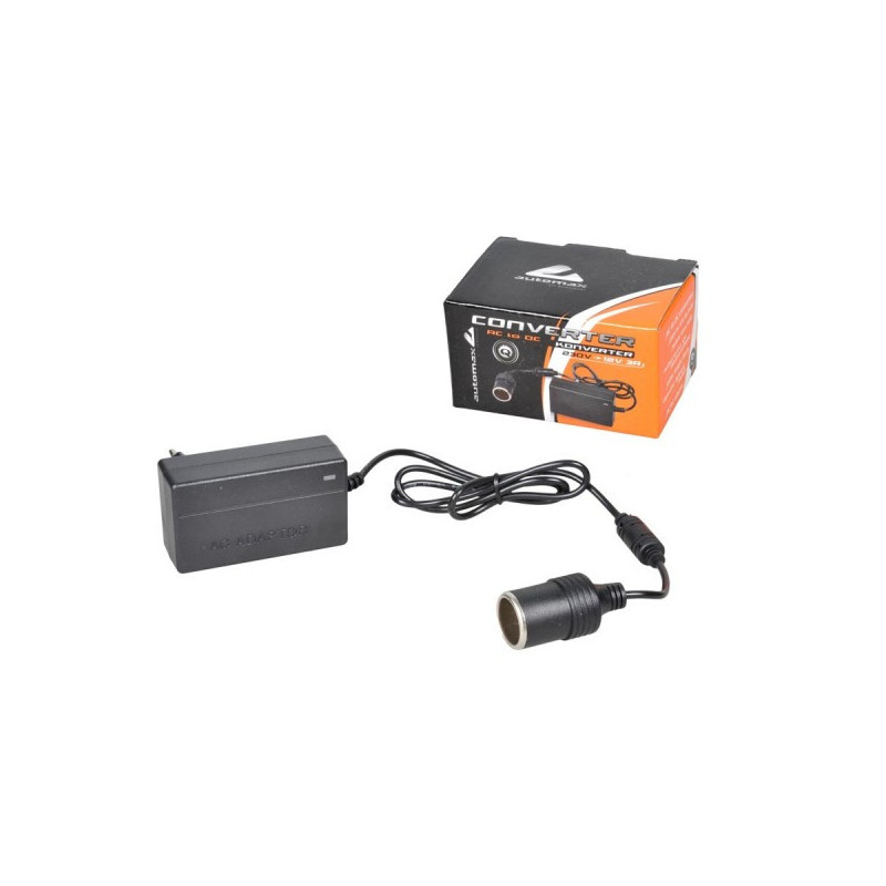 Prevodník striedavého prúdu na jednosmerný prúd. Prevádza vstupné napätie 230V na jednosmerné výstupné napätie 12V. S adaptérom môžete použiť 12V zariadení, ako sú kompresory, vysávače, chladiace boxy a ďalšie.