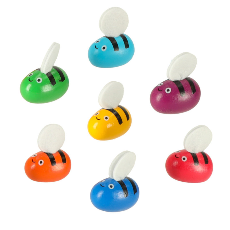 - 7 farebných drevených včiel